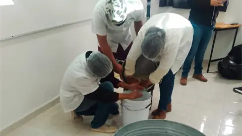 La práctica se realizó para que los estudiantes pudieran fortalecer sus conocimientos sobre los riesgos sanitarios asociados a la leche cruda, higiene y buenas prácticas de manufactura y la protección al consumidor.