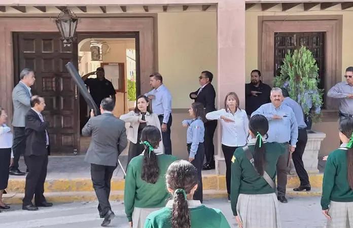 Dentro del acto cívico se llevaron a cabo los tradicionales honores a la bandera y se cantó el Himno Nacional, el evento estuvo a cargo de los estudiantes de la Escuela Secundaria Francisco Zarco, quienes hicieron una narración de las efemérides de esta fecha tan importante, donde destacaron que falsamente se ha dicho que América fue descubierta, pues este lugar ya existía, ya que estaban nuestros ancestros que eran diferentes tribus de indígenas quienes desde hace muchos años habitaban la zona.