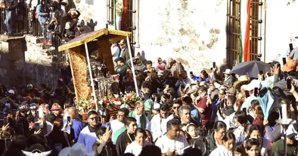 Feligreses hicieron un recorrido por las principales calles de la ciudad, muy emocionados de poder ver a su santo patrono, así mismo acudieron grupos de mineros que estuvieron cargando la imagen para agradecerle la protección que les ha brindado en su trabajo.
