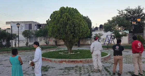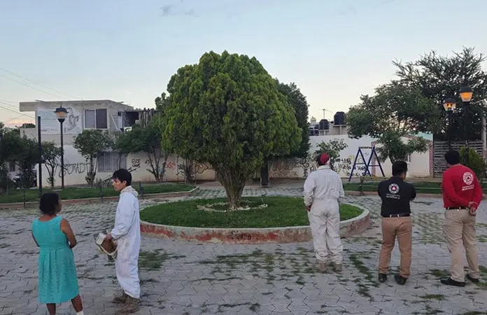 Al lugar también acudieron elementos de Protección Civil Municipal y Bomberos que en coordinación acordonaron el área para evitar que más personas fueran atacadas por el enjambre, ya que había muchas.