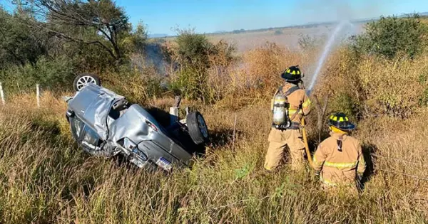 RIOVERDE.- Tripulantes de un vehículo sufren accidente al incendiarse la unidad, los pasajeros lograron salir de la unidad sin sufrir lesión alguna, antes de que las llamas abarcaran toda la unidad motriz.
