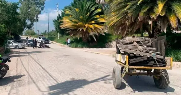 Los hechos se generaron en la calle Julián Carrillo y Chiapas, de la colonia Lagunita, debido a la falta de precaución por parte del chofer del automóvil, que no alcanzó a ver una carreta que era jalada por un equino, el tripulante de la carreta al momento del impacto cayó al pavimento golpeándose fuertemente y casi inconsciente.
