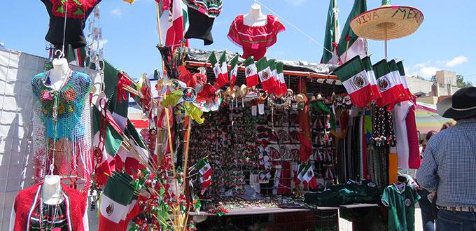 Vendedores del Estado de México en esta temporada se instalan en este municipio para realizar la venta de diversos distintivos patrios, como banderitas, rehiletes, sombreros y hasta llaveros, que son ofrecidos a buen precio para usarlos en estas fechas como distintivo nacionalista.