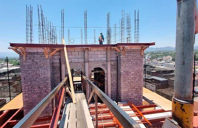 Matehuala.- Los trabajos de construcción de la torre del lado sur de Catedral iniciaron desde el mes de marzo, el plan es que las dos torres estén terminadas para finales de este año.