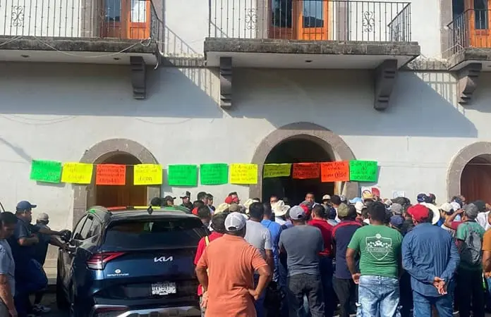 CIUDAD VALLES.- Con machetes y sogas en mano, habitantes de Santa María Picula fueron a bloquear la Presidencia Municipal porque no les han arreglado el camino a su poblado y los aires acondicionados para las escuelas de la localidad no han sido provistos aún.