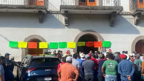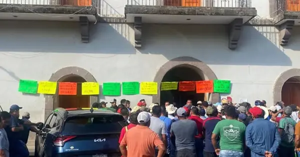 Cuando el reloj rondaba las nueve de la mañana, una turba de aproximadamente 100 personas fue a tapar las puertas de la Presidencia Municipal porque desde el 22 de mayo pasado, el Gobernador del Estado, Ricardo Gallardo Cardona les inauguró la obra del camino a ese lugar y hasta la fecha (tres meses y una semana después), no ha habido ningún avance en este camino.