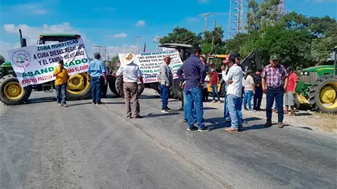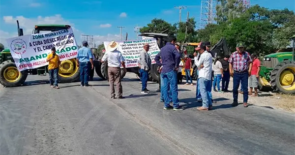 Desde las nueve de la mañana, decenas de agricultores marcharon sobre sus tractores de Casas Blancas a las oficinas de la Secretaría de Agricultura, con la consigna de “La lucha es por el alimento de todos” y después de las 11 y media bloquearon la carretera federal 70, solamente permitiendo el tránsito de vehículos de emergencia o gente que tuvieran citas médicas.