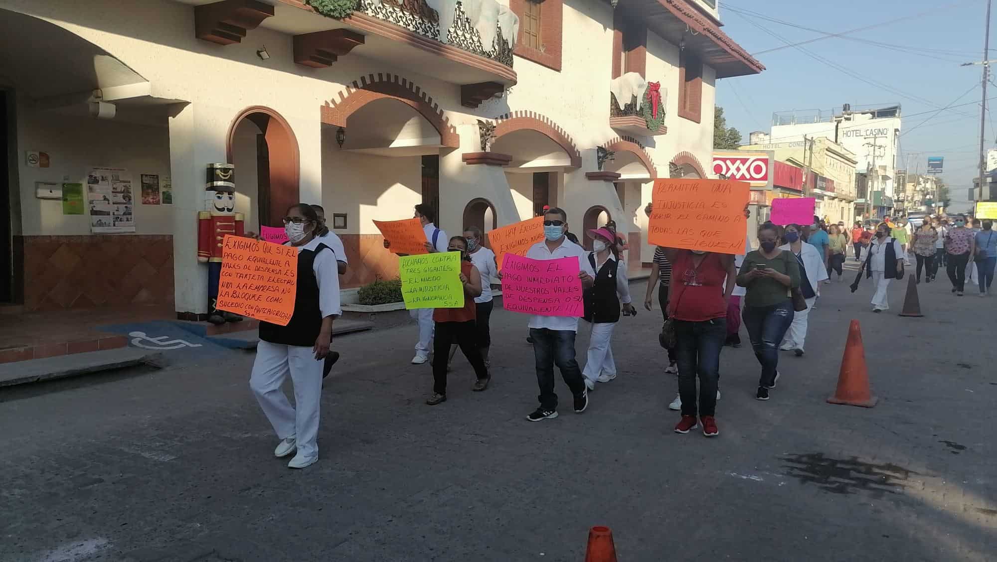 El pasado jueves 23 de diciembre, un grupo menor de manifestantes cerró parcialmente la misma vía y luego fueron a cerrar totalmente la calle Hidalgo de seis a siete de la noche con la misma exigencia es la misma: el pago a cada uno de los dos mil trabajadores de 13 mil 300 pesos de vales, pero agregaron que desconocerían a sus líderes sindicales, que no se presentaron a protestar y no han negociado para que se les envíen las tarjetas.