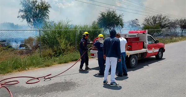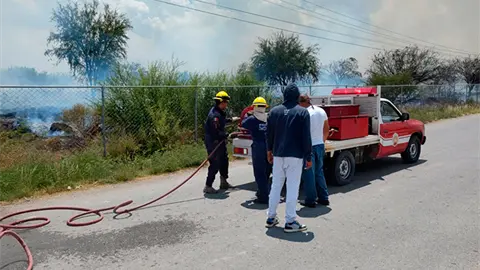 Matehuala.- Bomberos atienden llamado de emergencia recibido de la colonia República de donde reportaron un fuerte incendio en un lote baldío, gracias a la pronta acción de los tragahumo lograron apagar el fuego y no hubo personas lesionadas.