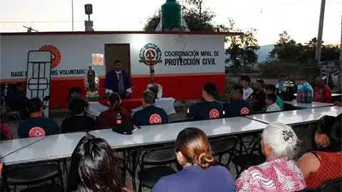 SAN CIRO DE ACOSTA.- Elementos del Cuerpo de Bomberos están de fiesta ya que celebraron su primer aniversario como institución de servicio con una misa que ofició el párroco Marco Antonio Esparza, donde pidió al Creador protección para los tragahumo.