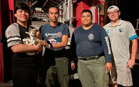 En la calle Libertad de la zona centro también les reportaron que había un gato atorado en la estructura de una casa, por lo que dos elementos de Bomberos acudieron al lugar para poder rescatar al gato, y al sacarlo se lo entregaron a sus familiares, afortunadamente el felino se encontraba en buenas condiciones físicas.