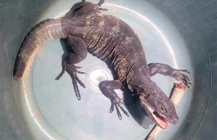 Bomberos rescatan a iguana de 50 cm