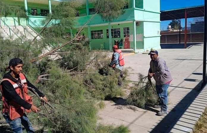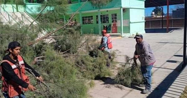 Personal de la Dirección de Ecología Municipal al tener conocimiento de los hechos acudió a la Primaria Club de Leones ubicada al lado oriente del Parque Vicente Guerrero el PAO a fin de hacer el levantamiento de las ramas que se desprendieron del vetusto árbol de la especie Casuarina.