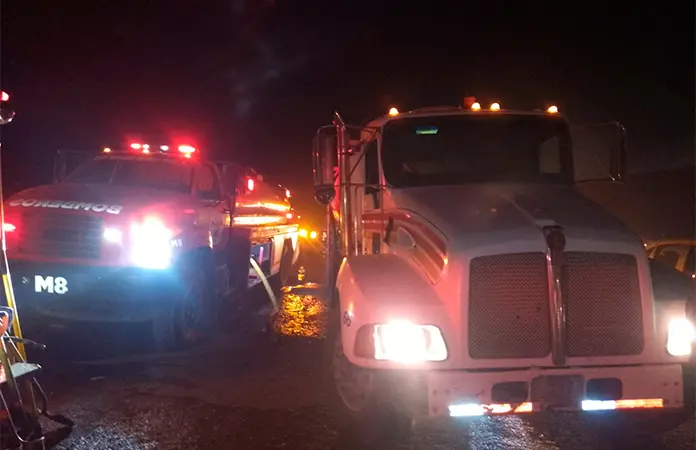 A las 3:20 de la tarde el Cuerpo de Bomberos recibió una llamada de un incendio de vehículo de carga de carbón, sin embargo, a través de las unidades M9 y M8 a carretera Rioverde-Valles se trasladaron los apagafuegos.