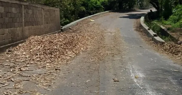 Con el paso de los vehículos, se va liberando jugo de los fragmentos de plantas y esto ocasionó un par de accidentes de moto en esa zona que tiene un voladero, precisamente con el paraje en el fondo, con el riesgo de algún accidente mortal.