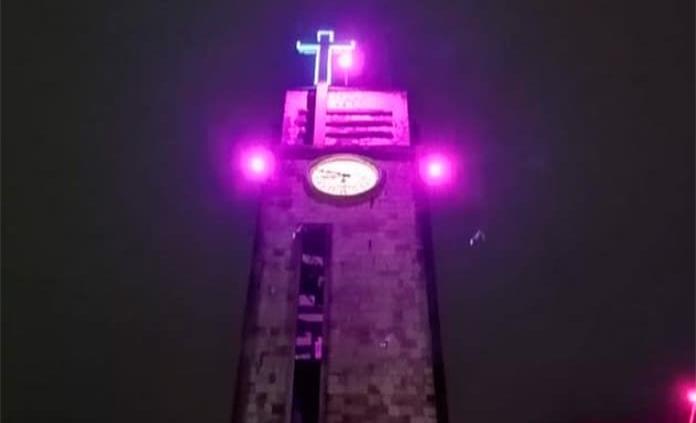 CIUDAD VALLES.- La Iglesia Catedral está iluminada con luces color rosa y permanecerá así hasta este 9 de marzo, como parte de una plegaria por todas las mujeres que sufren violencia en el país y en la zona Huasteca.