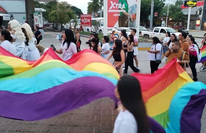 CIUDAD VALLES.- Con la mitad de los asistentes que el año pasado, integrantes de la comunidad LGBTTTIQ+ marcharon en conmemoración del orgullo gay, en este municipio.