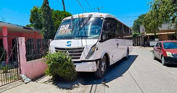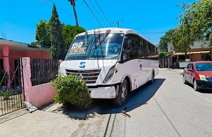 El chofer del autobús frenó bruscamente, pero no logró evitar el impacto, golpeando el costado derecho de la camioneta. Posteriormente, la unidad de pasajeros se proyectó hacia una jardinera, contra la cual se estrelló y terminó su trayecto.