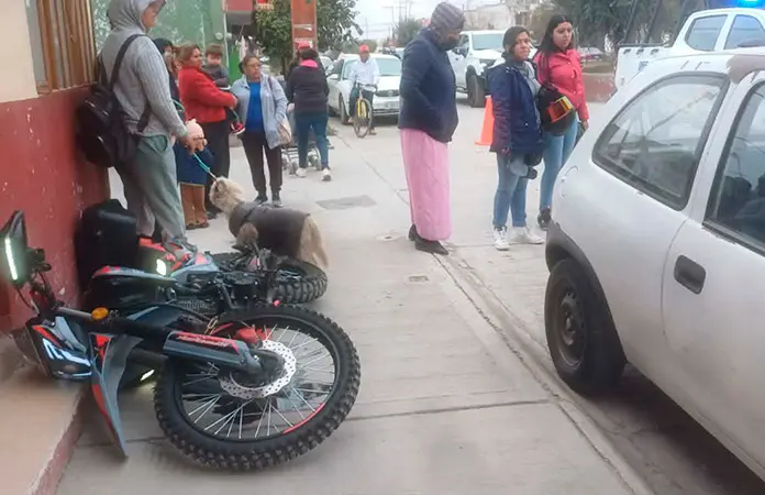 Matehuala.- Desigual choque se registró entre una camioneta y un motociclista, donde una mujer resultó con múltiples lesiones en el cuerpo, quien fue atendida por paramédicos de Protección Civil, quienes luego de evaluar sus lesiones la trasladaron a un hospital.