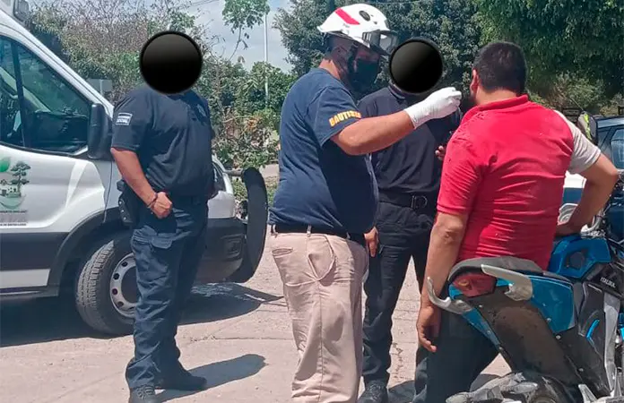 CIUDAD FERNÁNDEZ.- Dos personas resultaron lesionadas en un choque entre una motociclista y un vehículo en la comunidad El Altillo.