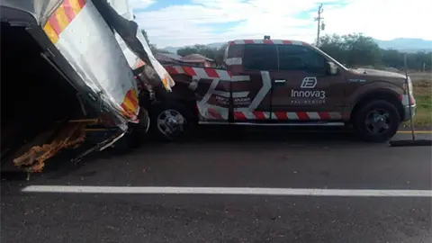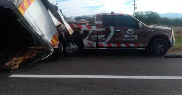 Matehuala.- Ayer por la mañana en la carretera 57 kilómetro 185 al sur de la ciudad, se registró un choque entre una camioneta con traila y un automóvil, resultando dos personas lesionadas, las que recibieron atención de parte de paramédicos de Protección Civil Municipal, que los trasladaron a un hospital, debido a las fuertes lesiones que presentaban.