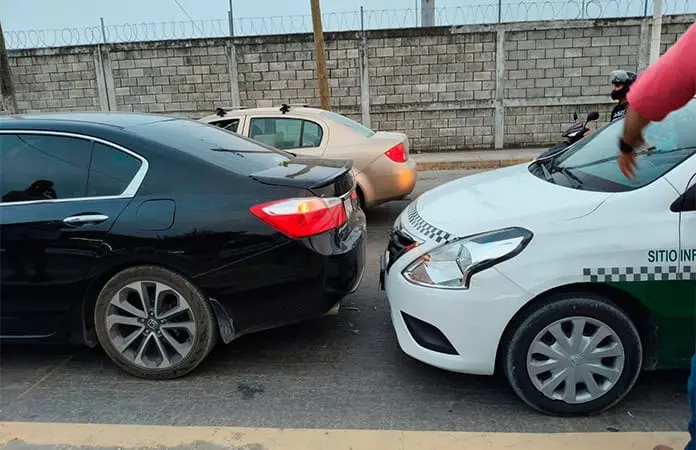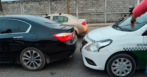 De acuerdo con los reportes, la conductora de un automóvil Honda se detuvo detrás de una fila de vehículos, de pronto fue impactada en la parte trasera por un Nissan Versa blanco con verde, habilitado como taxi, con número económico 557 del sitio Infonavit 2, el cual era manejado por un adulto mayor.