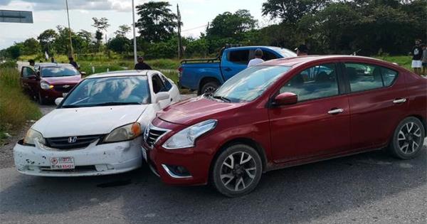 Ocurrió este domingo por la tarde, cuando el conductor de un vehículo Honda Civic color blanco, modelo atrasado, y con engomado de una organización campesina, trató de salir del Libramiento y cruzar la carretera libre Valles-Tampico, sin precaución alguna.