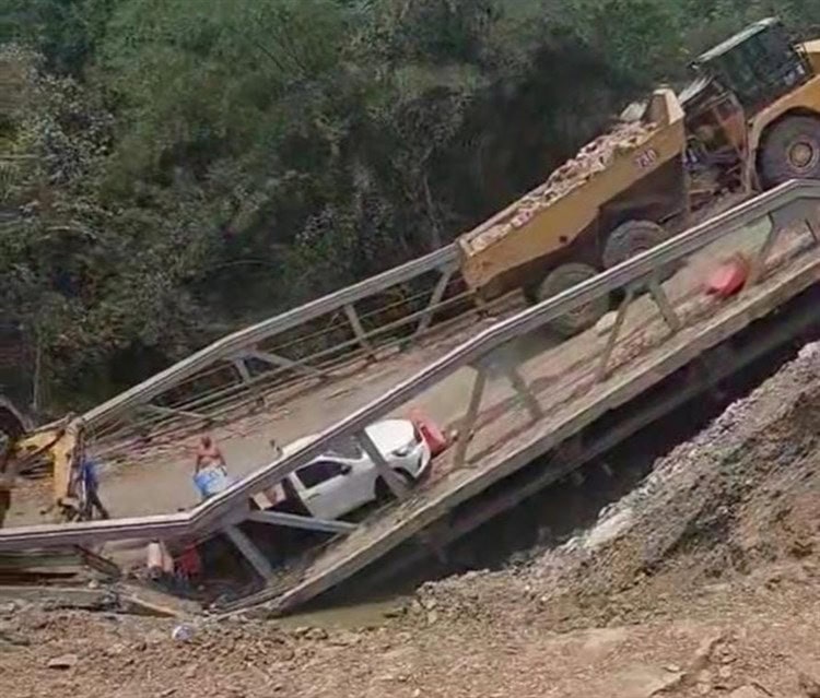 MATLAPA.- El puente de Palictla sucumbió por el paso de un camión de carga y un hombre quedó atrapado entre máquinas, aunque luego pudo ser trasladado a un nosocomio con lesiones.