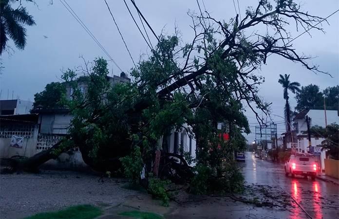 Sobre la calle Escontría, entre Madero y Carranza, un árbol de gran tamaño recargó parte de su ramaje sobre las líneas de alta tensión, por lo tanto, la Comisión Federal de Electricidad tuvo que hacer cortes de energía para no dañar las líneas de conducción en la zona centro, de acuerdo con reportes informativos de la oficina de la CFE del Golfo.