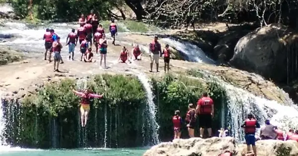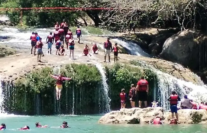 CIUDAD VALLES.- Colman los turistas los parajes en esta jornada. Micos registra lleno total, con dos mil 500 visitantes del centro del país y de otras naciones.