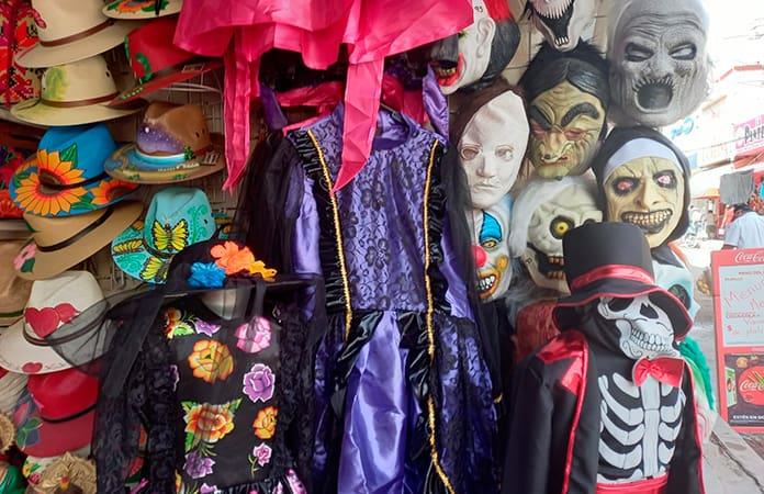 También se cuenta con sombreros, accesorios y pinturas para recrear el maquillaje, aunque lo más tradicional es el traje de vampiro, un disfraz completo oscila en 600 pesos lo que incluye el maquillaje; también se expenden mucho las máscaras que son las más económicas, se encuentran desde 85 a 90 pesos, el favorito es el clásico del hombre lobo, finalizó.