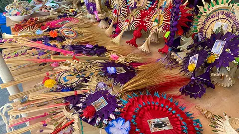 Desde el viernes arribaron comerciantes de Puebla y de Santa María del Río con costales llenos de materia prima para la elaboración de cruces y palmas tejidas, entre otros productos.