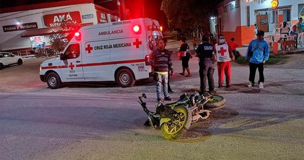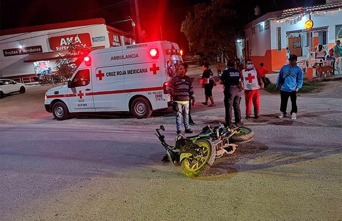 CIUDAD VALLES.- El conductor de un vehículo no tuvo precaución al cruzar el bulevar Camino al Ingenio y tumbó a un motociclista, posteriormente se dio a la fuga.