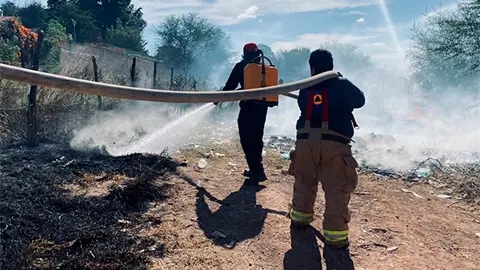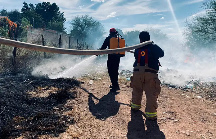 Ciudad Fernández.- Se registra un incendio de llantas y pastizal en el Barrio del Refugio, que se propagó con facilidad y gracias a la interve3nción de Bomberos pudo sofocarse para evitar una tragedia.