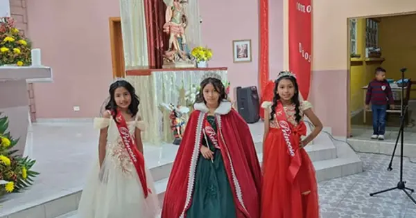 Matehuala.- Se llevó a cabo la coronación de la reina de las fiestas patronales de San Miguelito, la elegida para portar la corona fue la pequeña Estrella, junto a ella fueron coronadas las princesas Ximena y Alexa, quienes serán las representantes este año de San Miguelito, las pequeñas estaban felices luego de coronarse como reina y princesas.