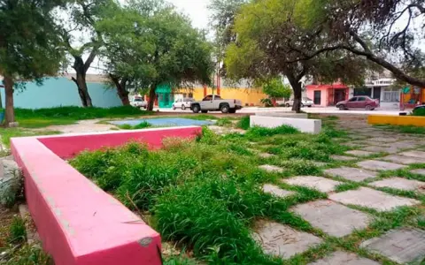 La plaza de la colonia que debería ser un sitio para la recreación, sobre todo de los menores de edad, ahora es un riesgo, debido a la maleza y que puedan salir víboras u otro tipo de animales que dañen a los menores, además de que da muy mala imagen, siendo que debe de ser un lugar de recreación y diversión.