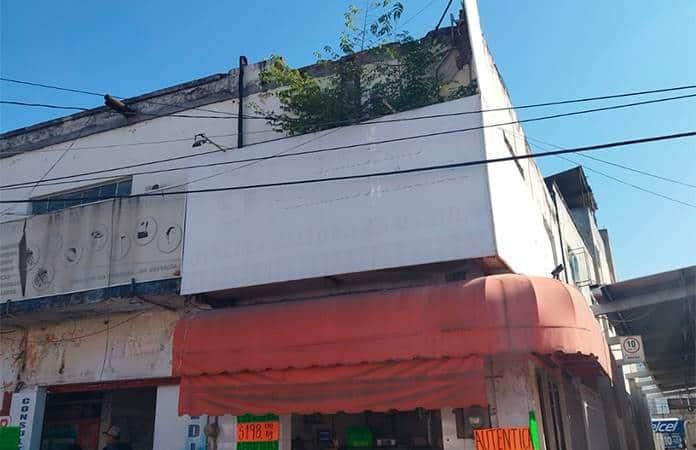 La dirección de Protección Civil Municipal tuvo que intervenir en un edificio que presentaba filtraciones de humedad bajo la saliente en calle Abasolo, antes de Madero y, por ende, un avanzado deterioro.