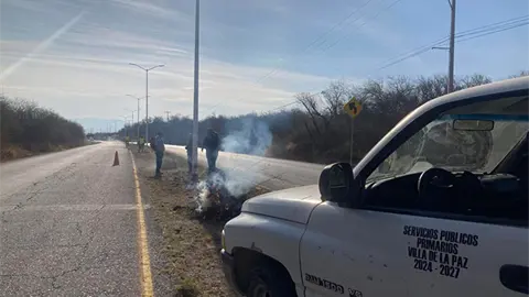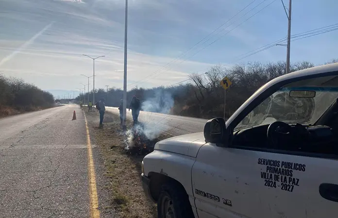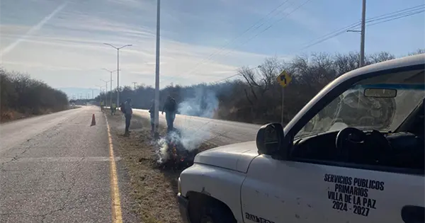 Villa de la Paz.- Realizan limpieza de la carretera a Villa de la Paz, ya que esta zona se encontraba llena de basura y sobre todo de maleza en camellones y a orillas de la rúa, lo que provocaba que el peligro de sufrir un accidente de lamentables consecuencias.
