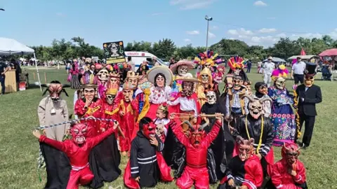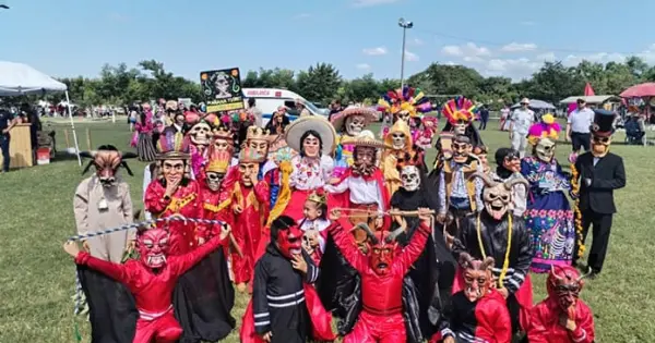 CIUDAD VALLES.- Las comparsas de San Vicente deleitaron a personas de todo el país en el campo municipal, desde la mañana de este 2 de noviembre.