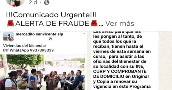 CIUDAD VALLES.- Denuncia Secretaría de Bienestar intento de fraude en nombre de ésta, con el pretexto de hacer trámites para las viviendas del Bienestar.