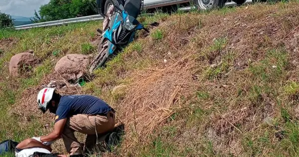 Los paramédicos brindaron atención médica a un joven de 20 años de edad, el que derrapó y cayó a un desnivel en el Canal a la Media Luna.