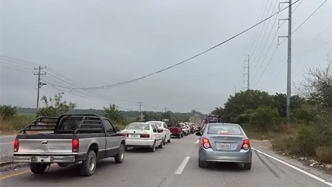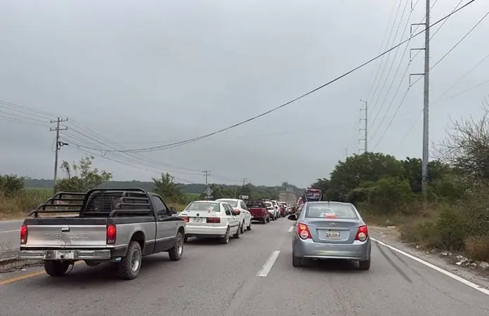 CIUDAD VALLES.- Los tapones puestos por Tránsito para que se efectuara el desfile provocaron embotellamientos incluso en el Libramiento Poniente, una carretera unida a vías federales.