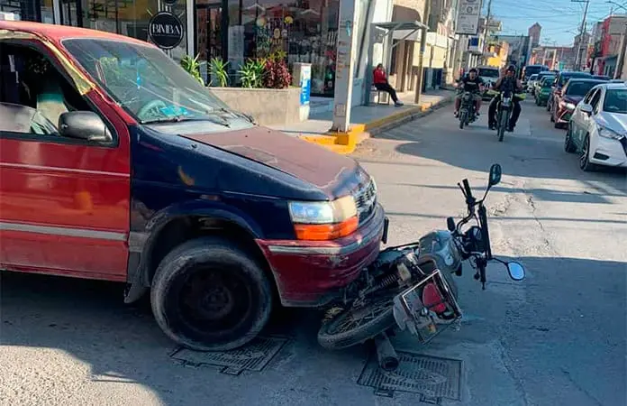 Los hechos se originaron en la calle Mariano Matamoros y Miguel Hidalgo, de la zona centro de la ciudad, donde el exceso de velocidad y la falta de precaución provocaron el percance entre una camioneta y una motocicleta, luego del accidente se solicitó apoyo a corporaciones de auxilio, pues el motociclista quedó tirado en el pavimento.