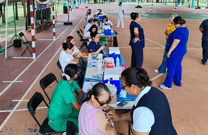 CIUDAD VALLES.- Sin respuesta de los ciudadanos la jornada de vacunación que ofreció la Jurisdicción Sanitaria V en el Gómez Morín este miércoles.
