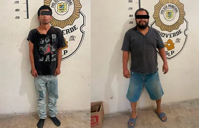 RIOVERDE.- En el ejido Puente del Carmen, oficiales de Seguridad Pública Municipal detuvieron a dos sujetos por delitos contra la salud y por agredir a los agentes policiacos.