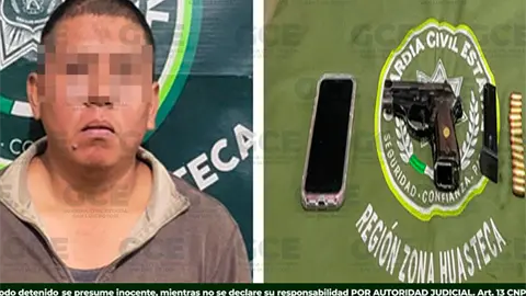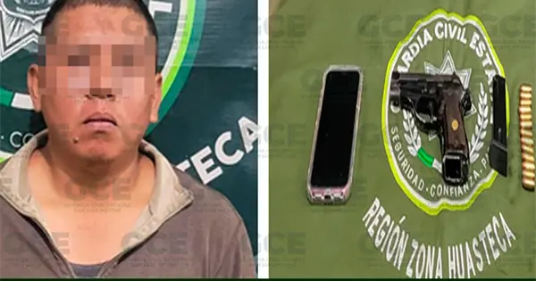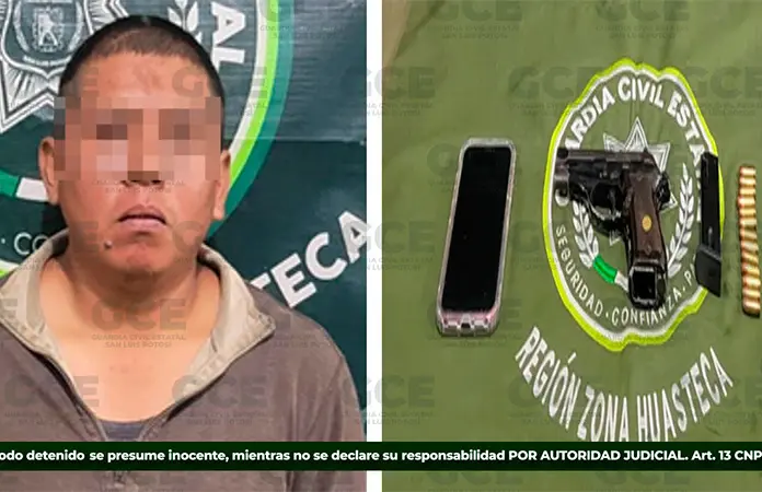 TAMPACÁN.- Un hombre que presuntamente portaba un arma de fuego se metió a robar a una casa en Tampacán y fue detenido en flagrancia.