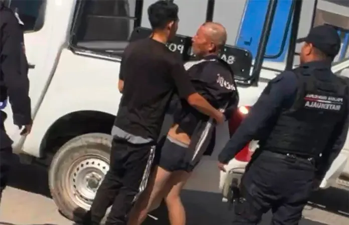 Detienen policías a un hombre semidesnudo