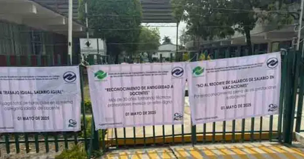 Las lonas fueron colocadas el 8 de mayo y “contenían demandas legítimas del personal docente”. El acto fue descrito por la delegación sindical como censura y una afrenta a la libre expresión.