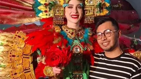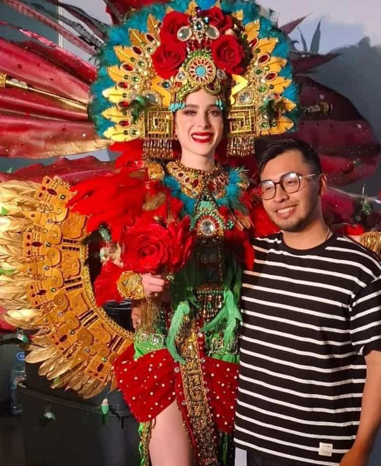 El diseñador originario de uno de los municipios más alejados de la Huasteca, en el confín sur, presumió fotos con la ganadora del certamen de belleza, mientras ella lo vestía.