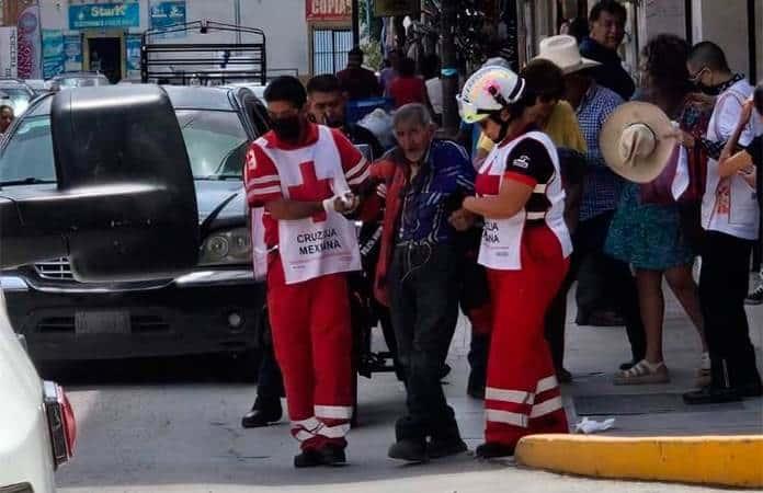Matehuala.- Don Carmen Banda mejor conocido como Don Pajarito en toda la ciudad, sufrió un desmayo mientras se encontraba vendiendo sus nopalitos, en la banqueta de la calle Hidalgo, por lo que elementos de la Cruz Roja le